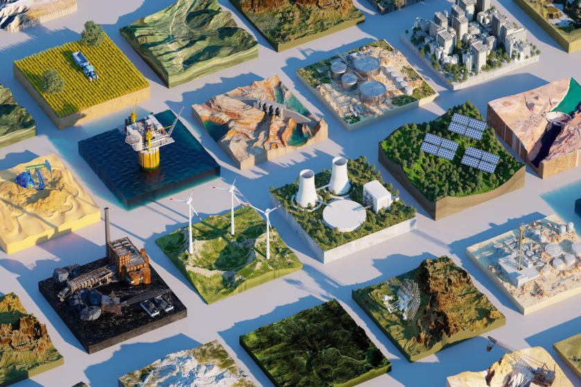 Digital erzeugtes Bild mehrerer rechteckiger Umweltquerschnitte mit verschiedenen Arten der Energieversorgung