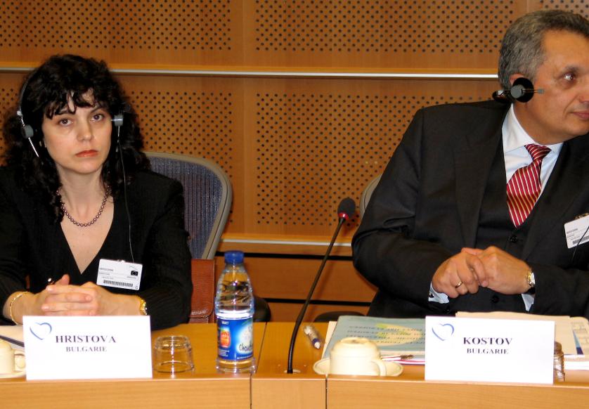 5. Gipfeltreffen der Fraktionsvorsitzenden der EVP-Mitgliedsparteien Abtianeta Hristova, Internationals Sekretärin der bulgarischen Union der Demokratischen Kräfte, und Ivan Kostov, Vorsitzender der Demokraten für ein starkes Bulgarien