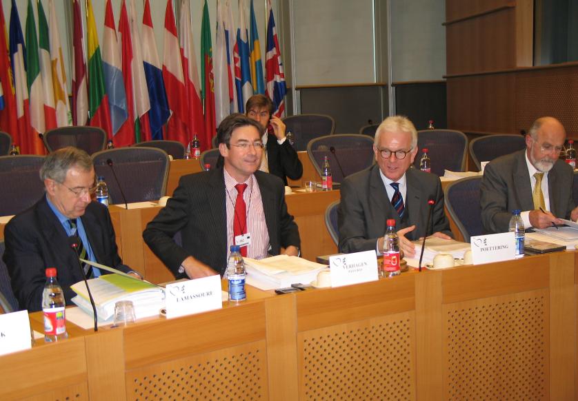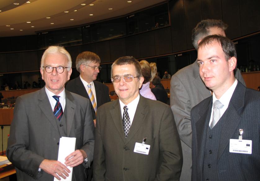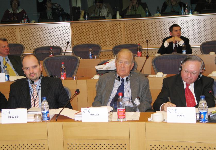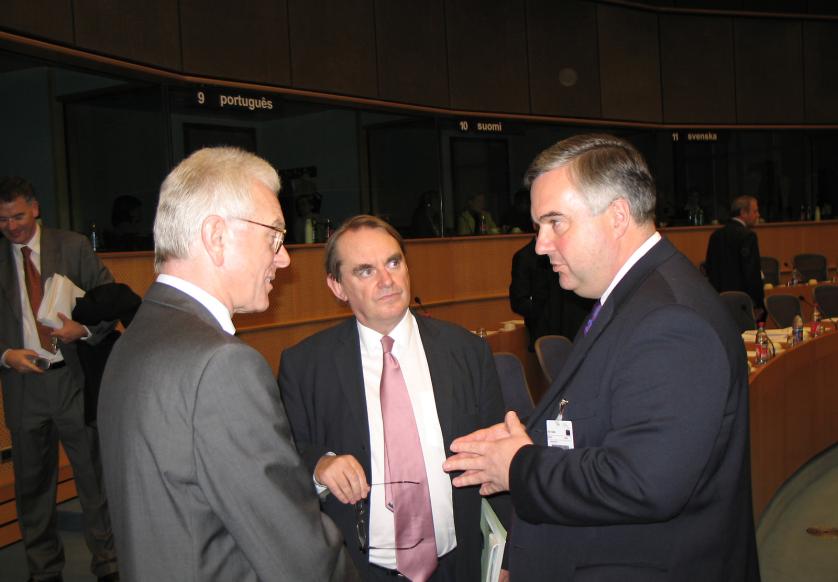 3. Gipfeltreffen der EVP-ED-Fraktionsvorsitzenden - EU-25 v.l.: Péter Olajos MdEP (EVP-ED, Ungarn), Jean-François Poncet, stellv. Vorsitzender des Ausschusses für auswärtige Angelegenheiten des französischen Senats, Jacques Bobe, stellv. Vorsitzender der UMP-Fraktion in der französischen Nationalversammlung