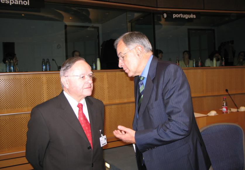 3. Gipfeltreffen der EVP-ED-Fraktionsvorsitzenden - EU-25 v.l.: Elmar Brok MdEP (EVP-ED, Deutschland), Vorsitzender des Ausschusses für Auswärtige Beziehungen des Europäischen Parlaments, und Alain Lamassoure MdEP (EVP-ED, Frankreich), Mitglied des Ausschusses für konstitutionelle Angelegenheiten des Europäischen Parlaments