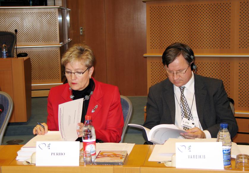 3. Gipfeltreffen der EVP-ED-Fraktionsvorsitzenden - EU-25 Maija Perho, finnische Ministerin für soziale Angelegenheiten und Gesundheit, und Egidijus Vareikis, Mitglied der Seimas (Fraktion der Homeland Union - Konservative, Litauen)