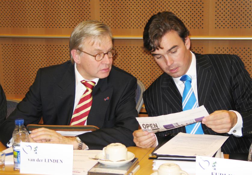 3. Gipfeltreffen der EVP-ED-Fraktionsvorsitzenden - EU-25 v.l.: René van der Linden (CDA, Niederlande), Vorsitzender der CDA-Fraktion in der Ersten Kammer der Niederlande und Vorsitzender der EVP-Fraktion im Europarat, und Camiel Eurlings MdEP (EVP-ED, Niederlande), Berichterstatter des Europäischen Parlaments zur Türkei