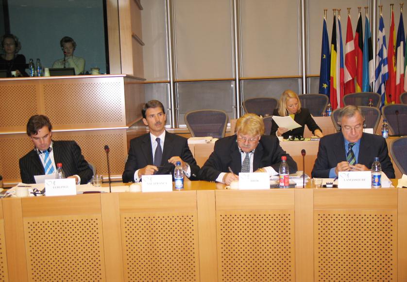 3. Gipfeltreffen der EVP-ED-Fraktionsvorsitzenden - EU-25 v.l.: Camiel Eurlings MdEP (EVP-ED, Niederlande), Berichterstatter des Europäischen Parlaments zur Türkei, José Ignacio Salafranca Sánchez-Neyra MdEP (EVP-ED, Spanien), EVP-ED-Koordinator im Ausschuss für Auswärtige Angelegenheiten des Europäischen Parlaments, Elmar Brok MdEP (EVP-ED, Deutschland), Vorsitzender des Ausschusses für Auswärtige Beziehungen des Europäischen Parlaments, und Alain Lamassoure MdEP (EVP-ED, Frankreich), Mitglied des Ausschusses für konstitutionelle Angelegenheiten des Europäischen Parlaments