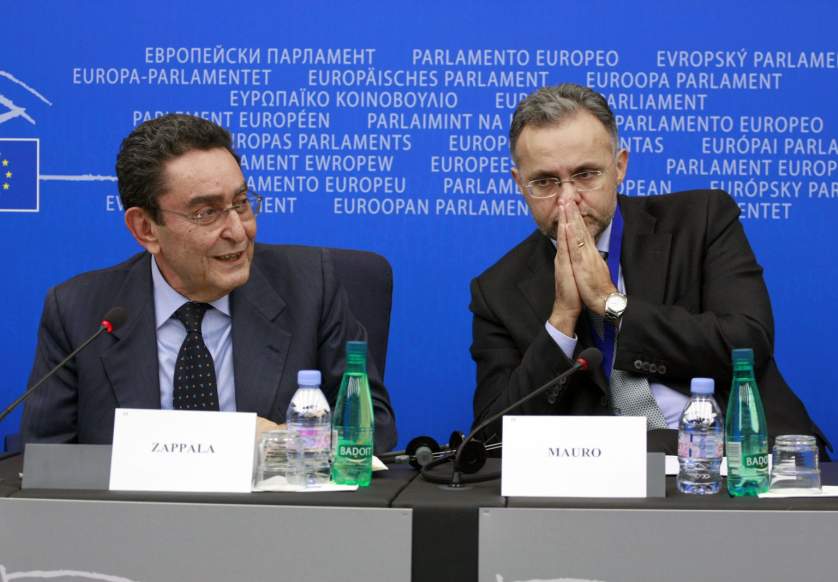 Pressekonferenz über die Grundrechte bezüglich der Italienischen Linken Stefano Zappalà MdEP, Leiter der italienischen Delegation (FI) der EVP-ED-Fraktion im Europäischen Parlament, und Mario Mauro MdEP, Vizepräsident des Europäischen Parlaments (EVP-ED, Italien)