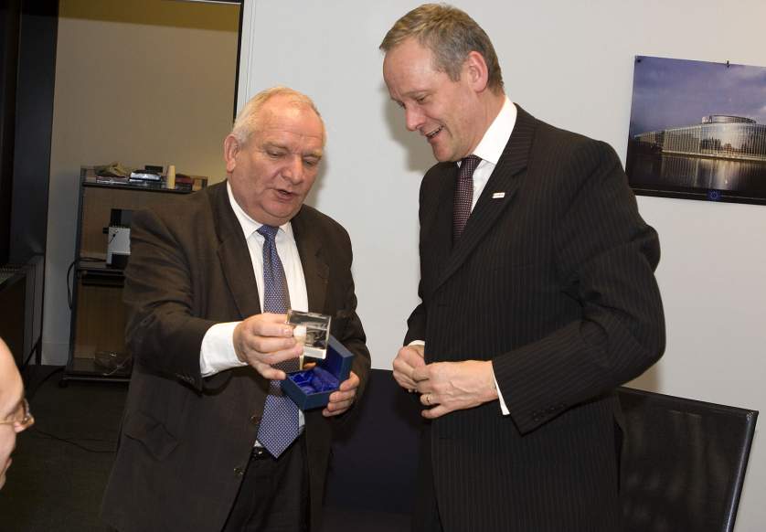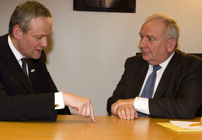 Treffen mit dem Tiroler Landtagspräsidenten Othmar Karas MdEP (Österreich), Schatzmeister der EVP-ED-Fraktion im Europäischen Parlament (rechts), mit dem Tiroler Landtagspräsidenten, Herwig Van Staa, der in seiner Funktion als Präsident des Kongresses der Gemeinden und Regionen Europas (CLRAE) in Brüssel weilte