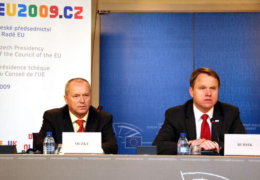 Pressekonferenz über die Diskussionen im Umweltausschuss des EP Miroslav Ouzký MdEP (EVP-ED, Tschechische Republik), Vorsitzender des Ausschusses für Umweltfragen, Volksgesundheit und Lebensmittelsicherheit des Europäischen Parlaments, und Martin Bursik, stellv. Ministerpräsident und Umweltminister der tschechischen Ratspräsidentschaft