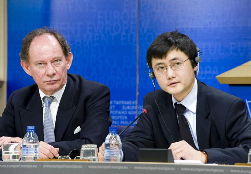 Pressekonferenz über 'Informationsfreiheit in China: Streit um chinesischsprachigen Satellitensender NTDTV' Edward McMillan-Scott MdEP (EVP-ED, Vereinigtes Königreich), Vizepräsident des Europäischen Parlaments (links), und Lixin Yang, Brüsseler Vertreter von NTDTV (New Tang Dynasty Television)