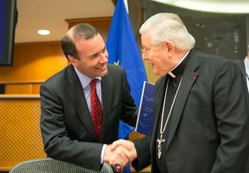 MdEP Manfred Weber (Deutschland), Vorsitzender der EVP-Fraktion im Europäischen Parlament, begrüßt Msgr. Alain Paul Lebeaupin, Apostolischer Nuntius bei der Europäischen Union
