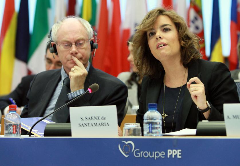 12ème Sommet des Présidents des groupes parlementaires PPE au sein des Parlements nationaux de l'UE Herman Van Rompuy, Président du Conseil européen, et Soraya Sáenz de Santamaria, Porte-parole du Groupe Partido Popular au Congrès espagnol
