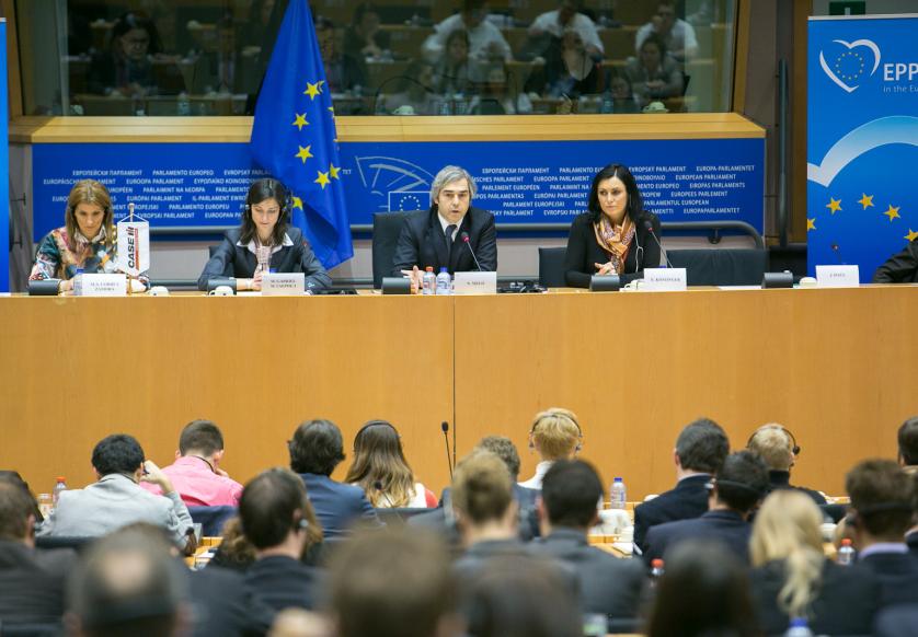 de gauche à droite: María Auxiliadora Correa Zamora, MdPE (Groupe PPE, Espagne), Mariya Gabriel, MdPE (Groupe PPE, Bulgarie), Nuno Melo, MdPE (Groupe PPE, Portugal), et Elisabeth Köstinger, MdPE (Groupe PPE, Austriche)