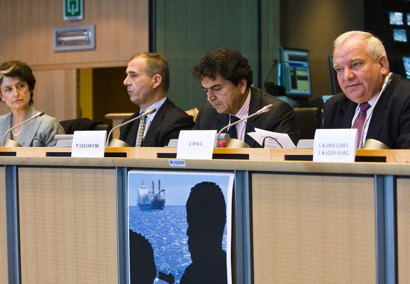 Audition du Groupe PPE sur 'Une solution politique en Somalie: le partage des responsabilités' de droite à gauche: Ioannis Kasoulides, MdPE (Chypre), Vice-président du Groupe PPE au Parlement européen, Pierre Lellouche, Secrétaire d'Etat français chargé des affaires européennes, Colonel Hubert de Reviers de Mauny, Conseiller technique chargé des questions de sécurité et de défense au sein du Cabinet de Pierre Lellouche, et Claude-France Arnould, Directrice pour les questions de défense, Conseil Européen