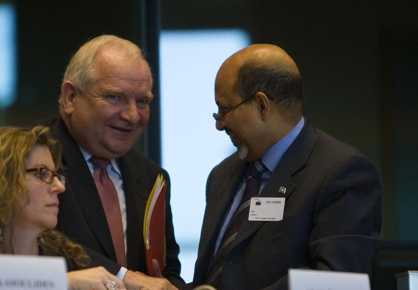 Audition du Groupe PPE sur 'Une solution politique en Somalie: le partage des responsabilités' Joseph Daul, MdPE (France), Président du Groupe PPE au Parlement européen (au centre), SE Saïd Farah, Ambassadeur de Somalie en France (à droite), et Christine Detourbet, Secrétariat du Groupe PPE
