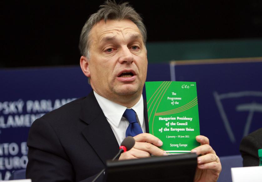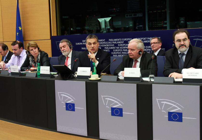 Réunion du Groupe PPE de gauche à droite: Othmar Karas, MdPE (Autriche), Manfred Weber, MdPE (Allemagne), Corien Wortmann-Kool, MdPE (Pays-Bas), Jaime Mayor Oreja, MdPE (Espagne), tous Vice-présidents du Groupe PPE au Parlement européen, Viktor Orbán, Premier ministre de la Hongrie et Président en exercice du Conseil de l'Union européenne, Joseph Daul, MdPE (France), Président du Groupe PPE, et Martin Kamp, Secrétaire général du Groupe PPE