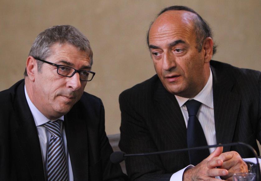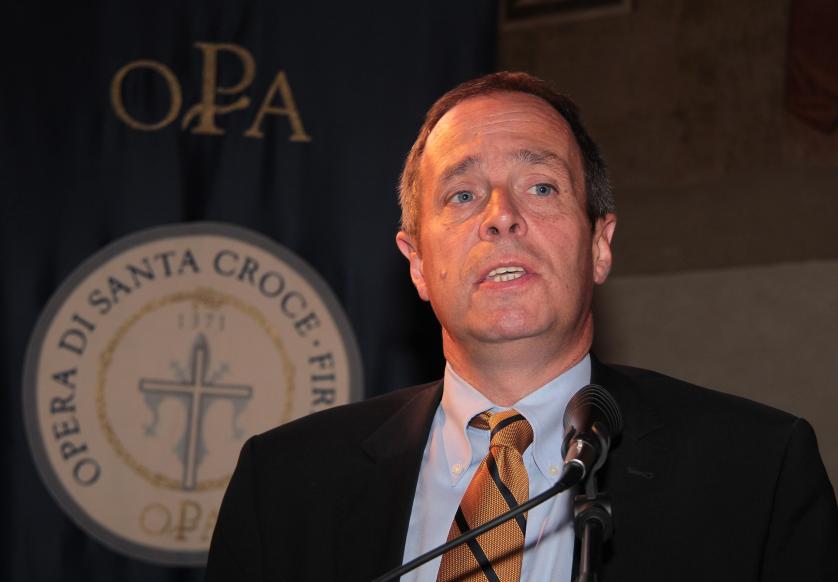 Mario Mauro, MdPE, Chef de la délégation italienne (PDL) du Groupe PPE au Parlement européen (à gauche), et Mgr. Claudio Maniago, Vicaire général de l'archidiocèse de Florence