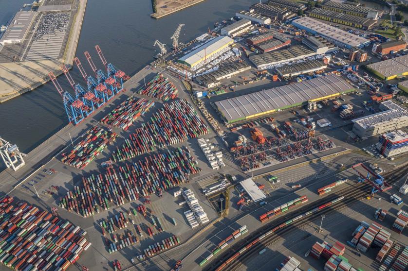 Allemagne, Hambourg, vue aérienne du terminal à conteneurs Tollerort