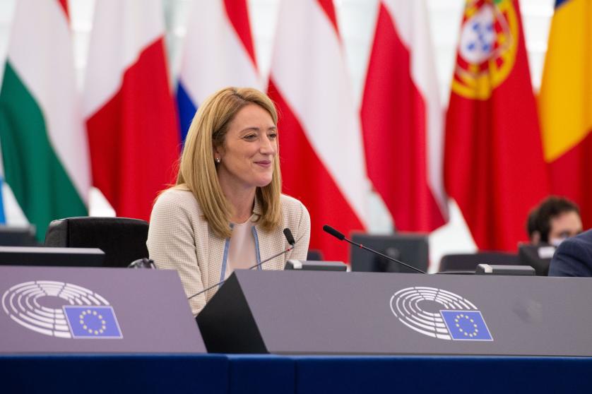 Vice President Roberta Metsola chairing the plenary session of the European Parliament.