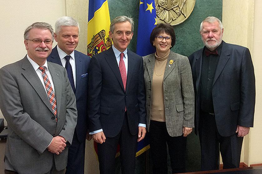Following the ratification of the Moldova Association Agreement in the European Parliament, EPP Group Members went to Chisinau to support the Liberal Democrats, of the pro-European camp in Moldova, in their electoral campaign. Sandra Kalniete, EPP Group Vice-Chair responsible for Eastern European Policy and Enlargement, Michael Gahler, EPP Group Rapporteur on Moldova, Jaromír Štětina, Vice-Chair of the Subcomittee for Security and Defence, and Andrzej Grzyb, EPP Group Coordinator in the Human Rights Subcommittee of the European Parliament, took part in the mission. During their stay they met with Iurie Leanca, Prime Minister, Vlad Filat, Chairman of the Liberal Democrats in Moldova, and Dorin Recean, Minister of the Interior. They also held consultations with representatives of the Justice Ministry. The Members attended various rallies to communicate to Moldovans the impact of the Association Agreement and their pro-European choice.