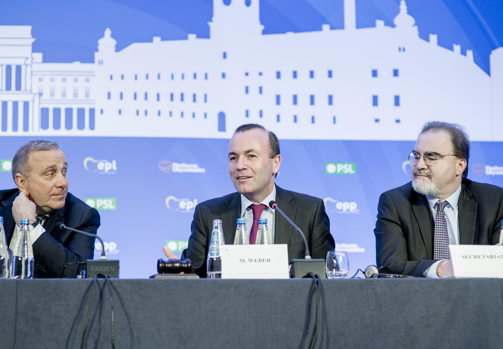 Manfred Weber MEP (Germany), Chairman of the EPP Group in the European Parliament, Grzegorz Schetyna MP, President of Civic Platform, and Martin Kamp, Secretary-General of the EPP Group