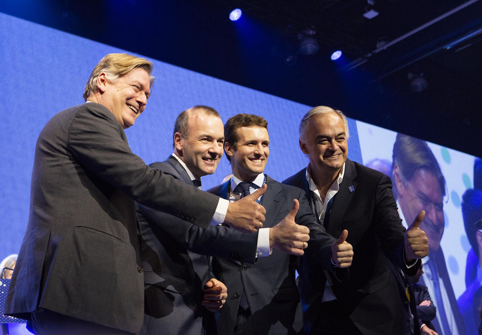 Manfred Weber MEP (Germany), Chairman of the EPP Group in the European Parliament (2nd from left), (l-r) Antonio López-Istúriz White MEP (EPP Group, Spain), Secretary-General of the European People's Party, Pablo Casado, President of Spain's Partido Popular, and Esteban González Pons MEP (Spain), Vice-Chairman of the EPP Group