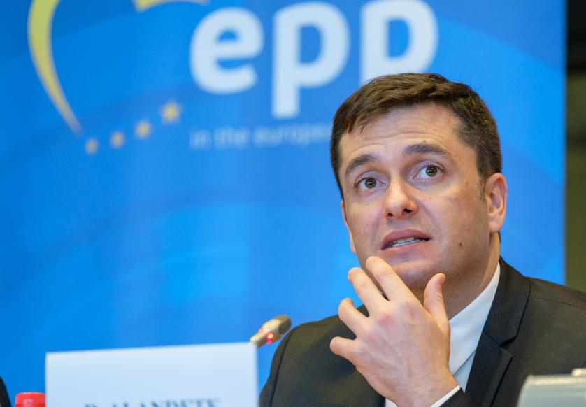 Esteban González Pons MEP (Spain), Vice-Chairman of the EPP Group in the European Parliament, Matthew Caruana Galizia, Pulitzer prize-winning journalist, and Marek Evison, EPP Group Secretariat