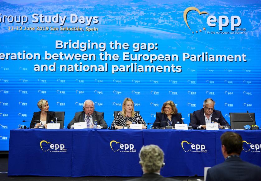 Dubravka Šuica MEP (Croatia), Vice-Chairwoman of the EPP Group in the European Parliament (speaking), (l-r) Dara Murphy TD, Vice-President of the European People's Party and Campaign Director for the 2019 European Elections, Mathieu Gallard, Research Director at Ipsos, Paris, Marek Evison, EPP Group Secretariat, Dr Karl-Rudolf Korte, Professor of political science at the University of Duisburg-Essen, and Dr Ivan Krastev, Chairman of the Centre for Liberal Strategies, Sofia