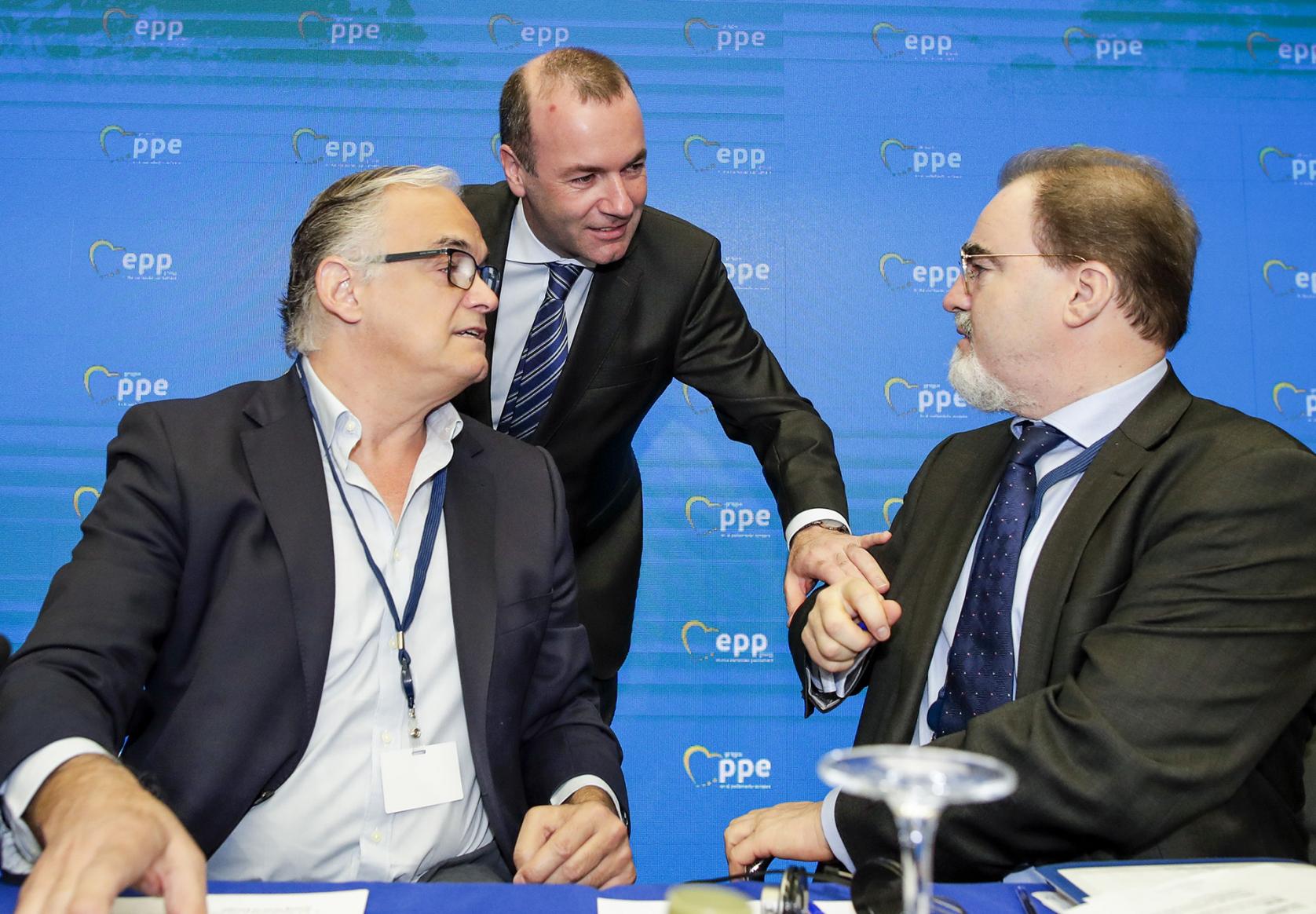 Manfred Weber MEP (Germany), Chairman of the EPP Group in the European Parliament (standing), Esteban González Pons MEP (Spain), Vice-Chairman of the EPP Group (on the left), and Martin Kamp, Secretary-General of the EPP Group