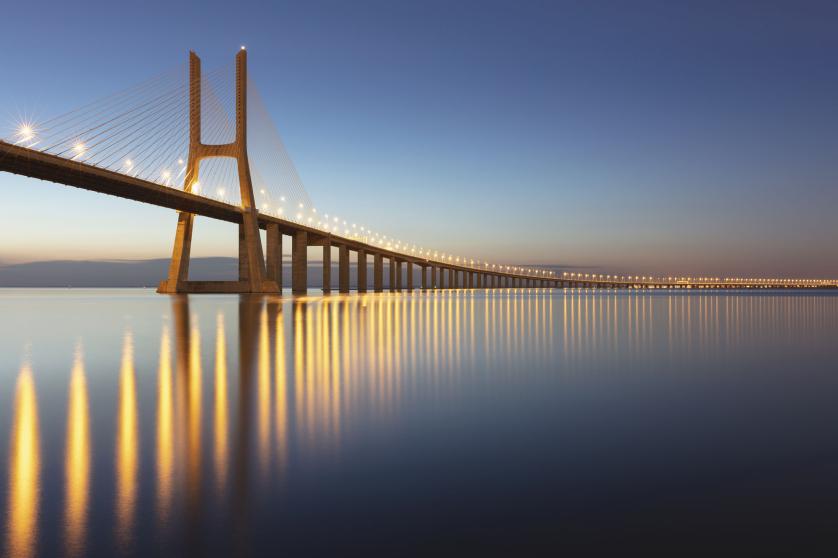 Portugal, Distrito de Lisboa, Lisboa, Ponte Vasco da Gama ao anoitecer