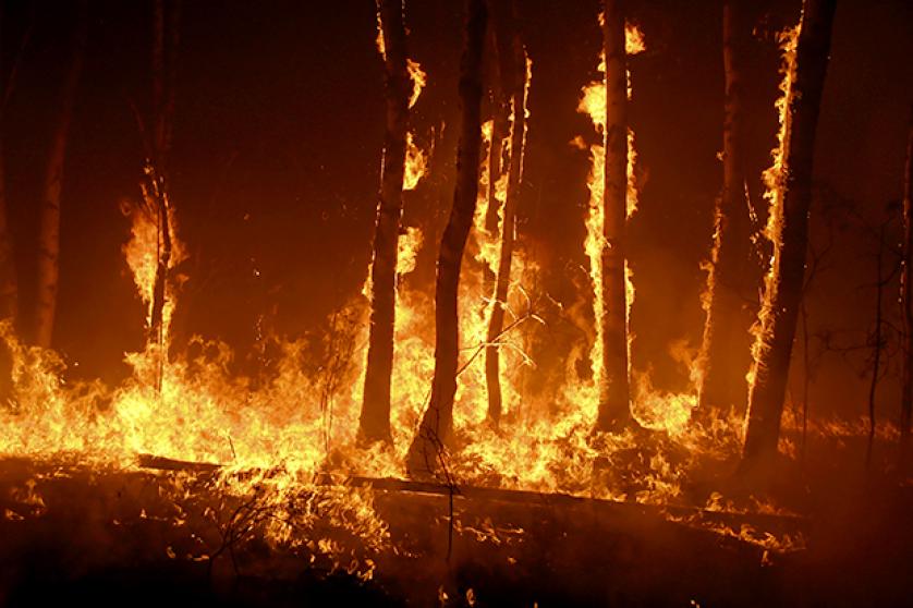 Burning trees in the forest