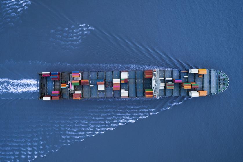Do prístavu sa blíži veľká kontajnerová loď plná kontajnerov a nákladu