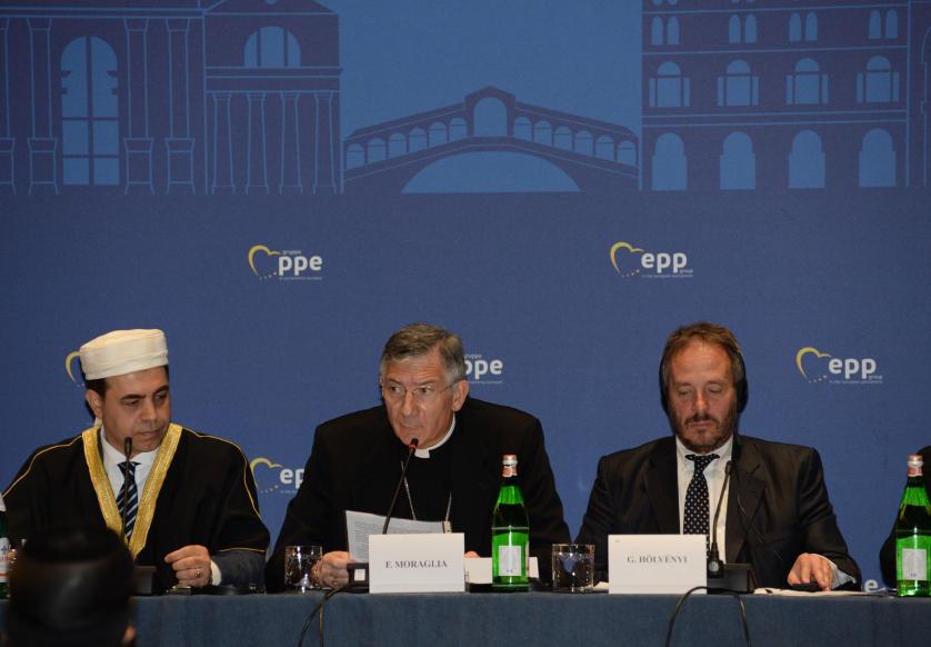 l-r: Nader Akkad, Imam from Trieste, Mons Francesco Moraglia, Patriarch of Venice, and György Hölvényi MEP (Hungary), Co-Chairman of the EPP Group's Working Group on Intercultural Relations and Interreligious Dialogue