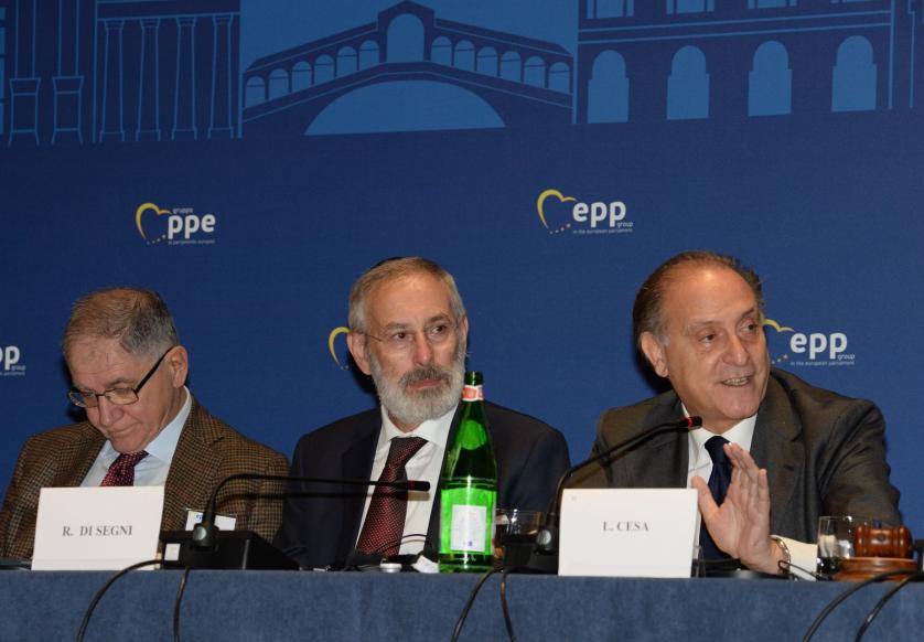 r-l: Lorenzo Cesa MEP, Head of the Italian (UDC-NCD-SVP) Delegation of the EPP Group, Riccardo Di Segni, Chief Rabbi of Rome, and Rocco Buttiglione MP, Vice-President of the Italian Parliament, Professor of philosophy and history of the European Institutions at the Pontificia Universitas Lateranensis, Rome, Italy