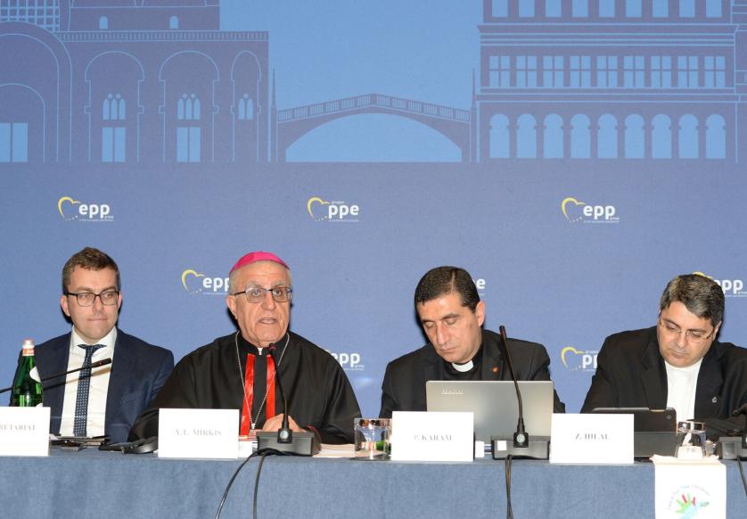 r-l: Rev Ziad Hilal SJ, Jesuit Refugee Service, Syria, Rev Paul Karam, President of Caritas Lebanon, Mons Yousif Thomas Mirkis OP, Chaldean Archbishop of Kirkuk & Sulaimanya, and Gábor Török, EPP Group Secretariat