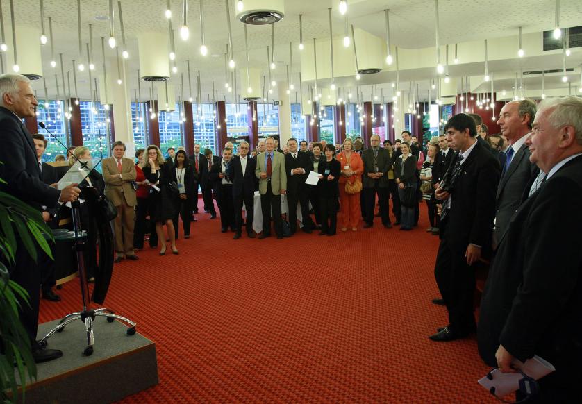 Jerzy Buzek MEP (EPP Group, Poland), President of the European Parliament, speaks to the crowd