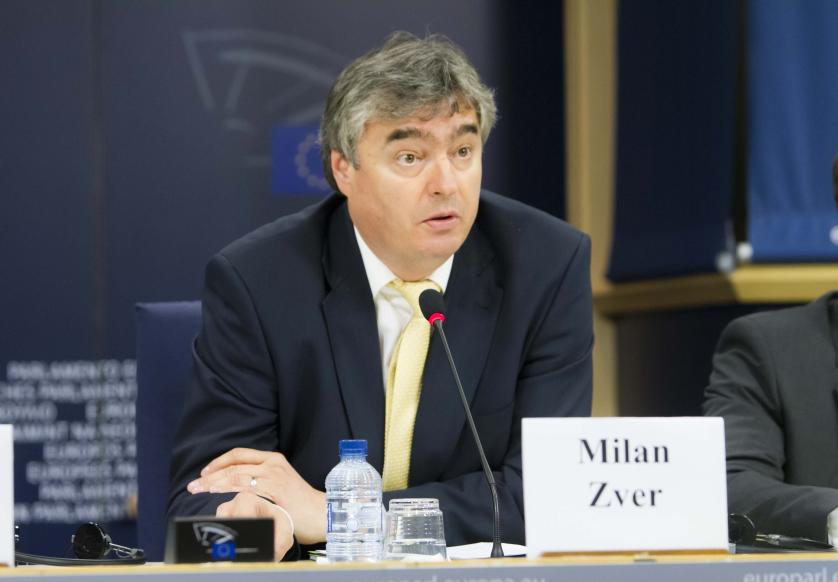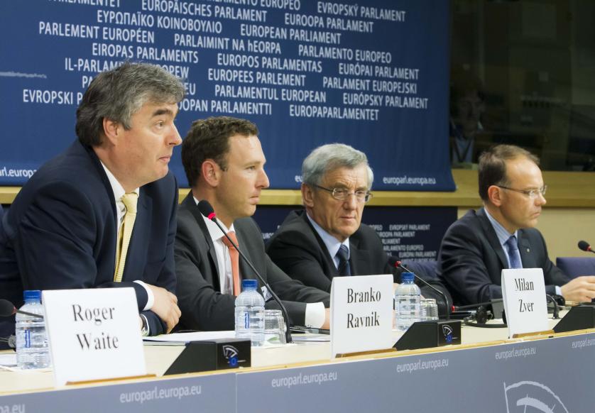 l-r: Milan Zver MEP, Head of the Slovenian Delegation of the EPP Group in the European Parliamen, Joris Baecke, President, European Council of Young Farmers, Albert Dess MEP (Germany), EPP Group Coordinator in the Committee of Agriculture and Rural Development of the European Parliament, and Patrick Schifflers, President of the Belgian Federation of Meat & Board Member of the Young European Meat Committee (YEMCO) of UECBV, the European Livestock and Meat-Trading Union
