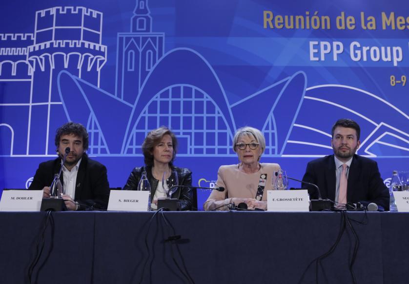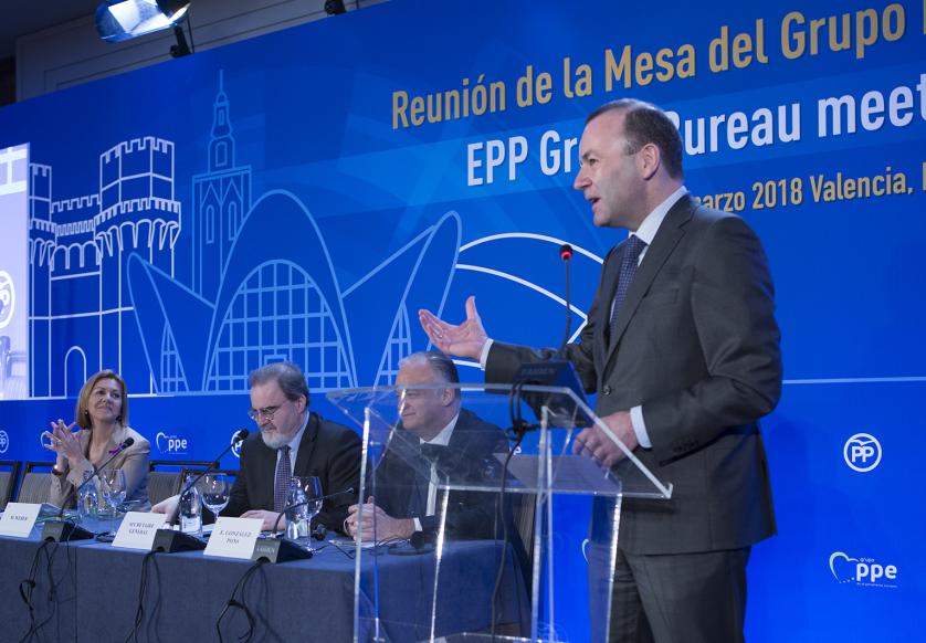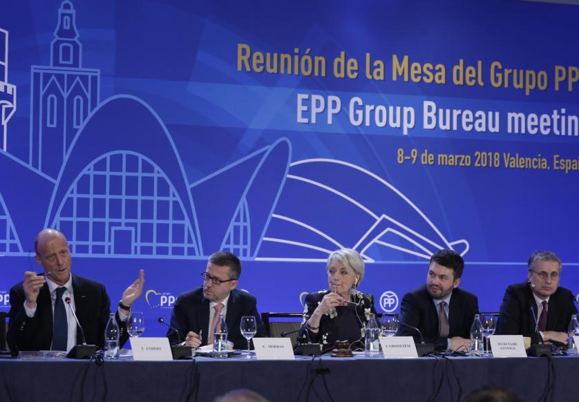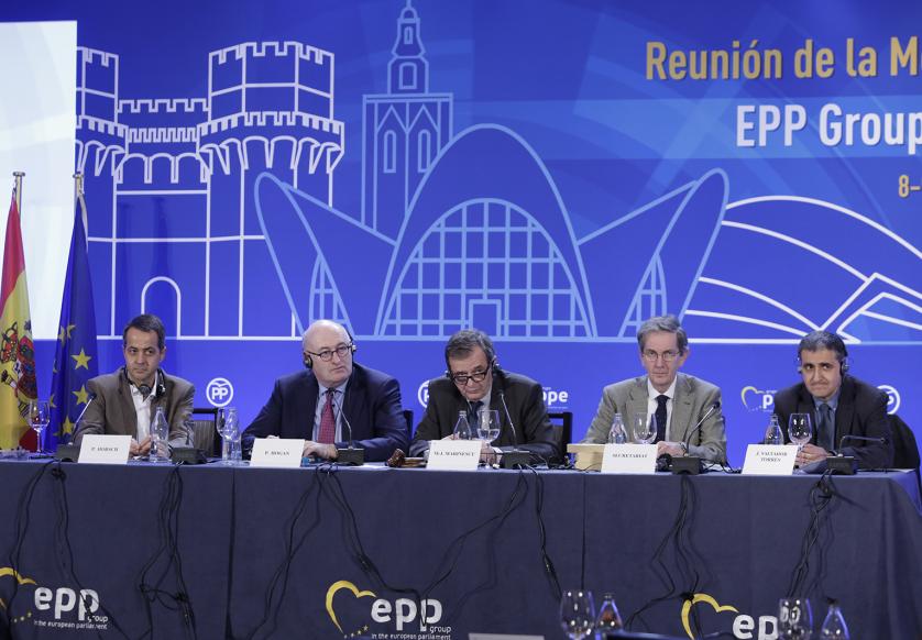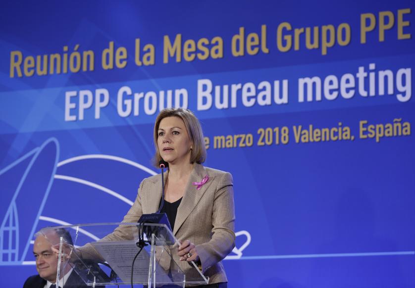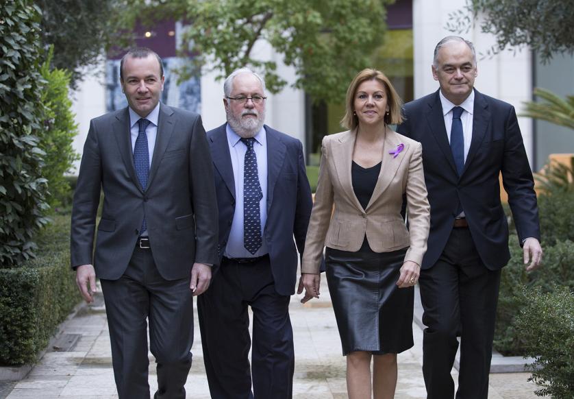 l-r: Manfred Weber MEP (Germany), Chairman of the EPP Group in the European Parliament, Miguel Arias Cañete, European Commissioner for Climate Action and Energy, María Dolores de Cospedal, Secretary-General of the Partido Popular, Spanish Minister of Defence, and Esteban González Pons MEP (Spain), Vice-Chairman of the EPP Group