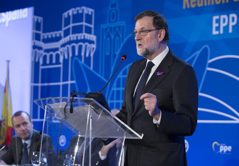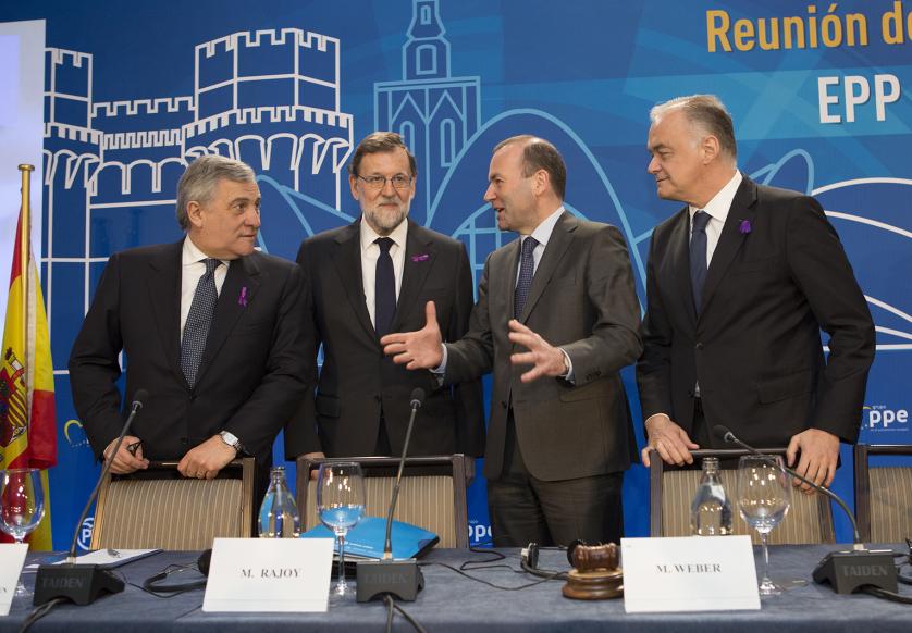 l-r: Antonio Tajani MEP (EPP Group, Italy), President of the European Parliament, Manfred Weber MEP (Germany), Chairman of the EPP Group in the European Parliament, Mariano Rajoy, Prime Minister of Spain, and Esteban González Pons MEP (Spain), Vice-Chairman of the EPP Group