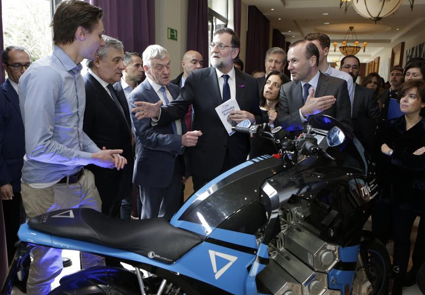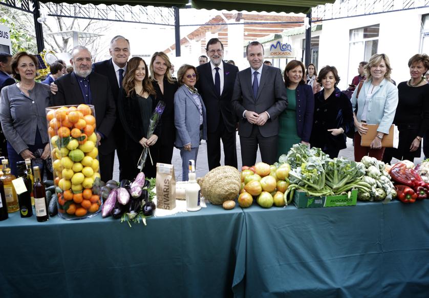 l-r: Verónica Lope Fontagné MEP, Agustín Díaz de Mera García Consuegra MEP, Esteban González Pons MEP, Vice-Chairman of the EPP Group, Teresa Jiménez Becerril Barrio MEP, Rosa Estaràs Ferragut MEP, Pilar Ayuso MEP (all Spain), Mariano Rajoy, Prime Minister of Spain, Manfred Weber MEP (Germany), Chairman of the EPP Group, Isabel Bonig Trigueros, President of Partido Popular in the Valencian Community, Soraya Sáenz de Santamaría, Deputy Prime Minister of Spain and Minister of the Presidency, Pilar del Castillo Vera MEP (Spain) and Inese Vaidere MEP (Latvia), both EPP Group