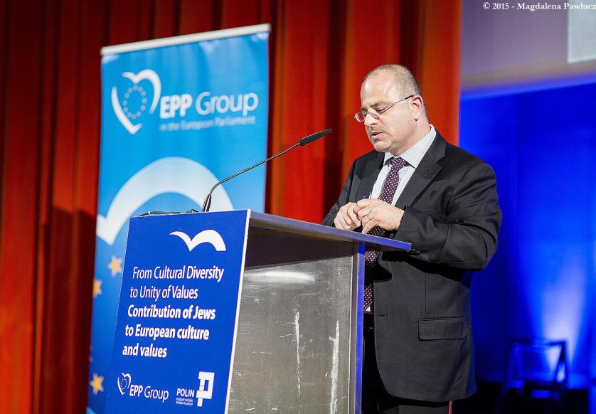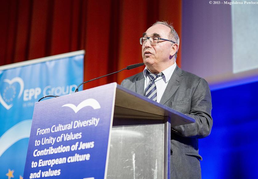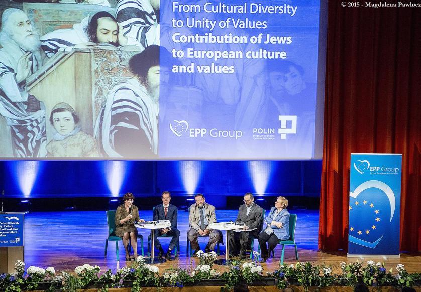 l-r: Sandra Kalniete MEP (Latvia), Vice-Chairwoman of the EPP Group in the European Parliament, Alvaro Albacete, Ambassador, Special Advisor to the Secretary-General for Public Diplomacy, KAICIID, Konstanty Gebert, 'Gazeta Wyborcza', European Council on Foreign Relations, Warsaw, Poland, Professor Stanisław Krajewski, University of Warsaw, Poland, and Róża Gräfin von Thun und Hohenstein (EPP Group, Poland)