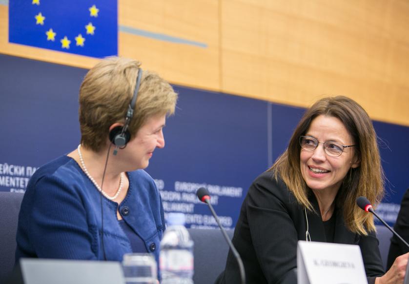 Elisabetta Gardini MEP (EPP Group, Italy), Rapporteur (on the right), and Kristalina Georgieva, European Commissioner for International Cooperation, Humanitarian Aid and Crisis Response