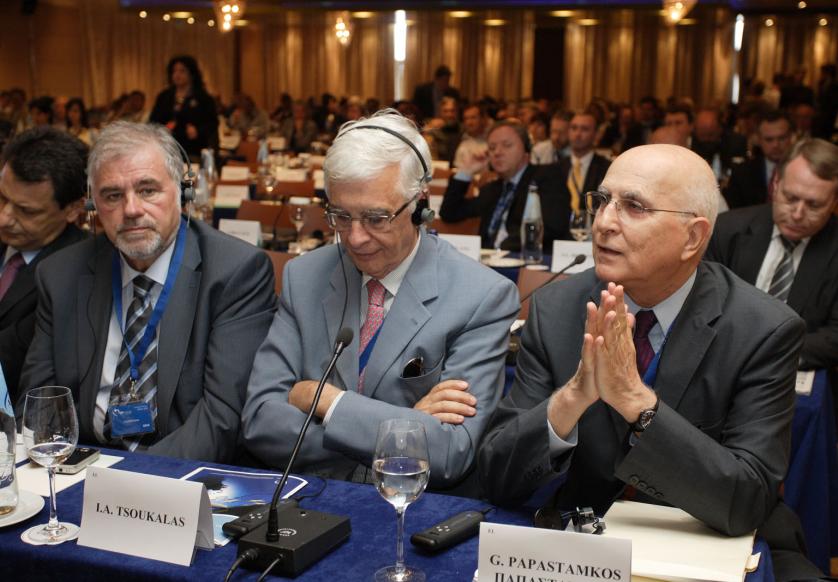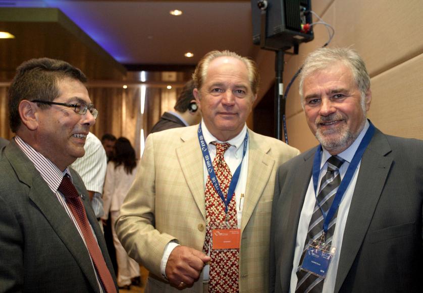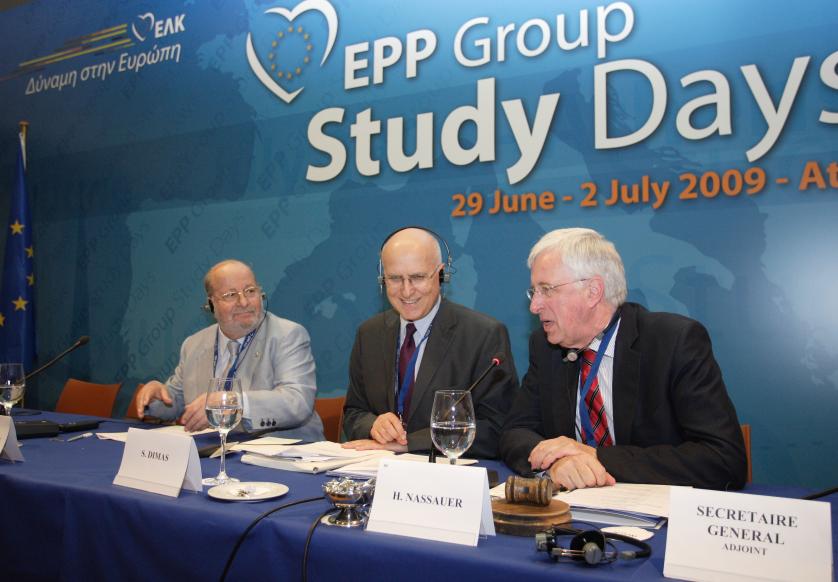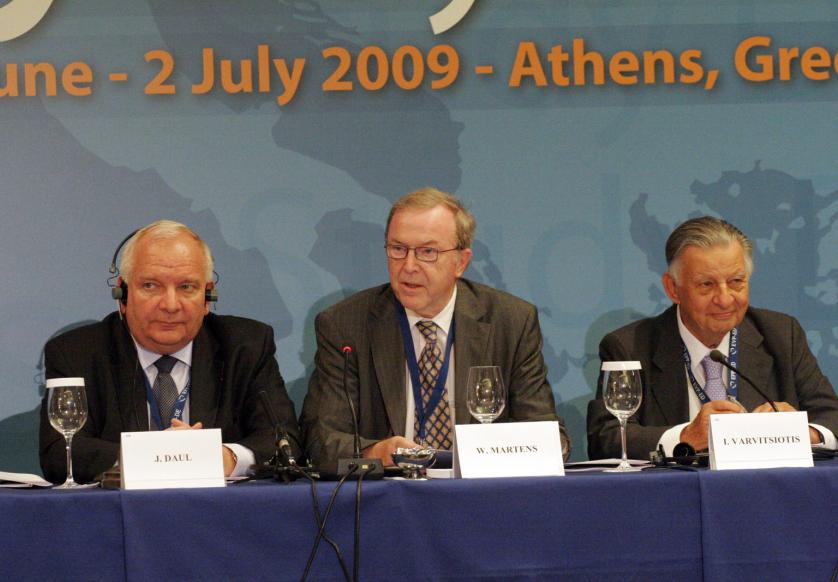 l-r: Joseph Daul MEP (France), Chairman of the EPP Group in the European Parliament, Wilfried Martens, President of the European People's Party, and Ioannis Varvitsiotis MEP, outgoing Head of the Greek Delegation of the EPP Group