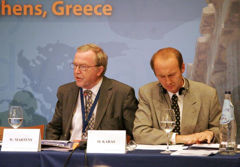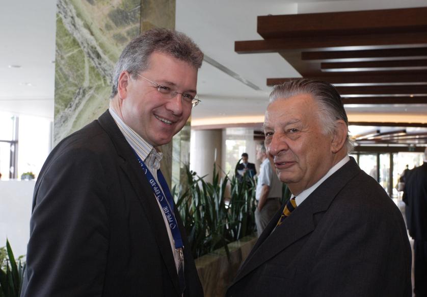Othmar Karas MEP (Austria), Vice-Chairman of the EPP Group in the European Parliament (on the right), and Wilfried Martens, President of the European People's Party