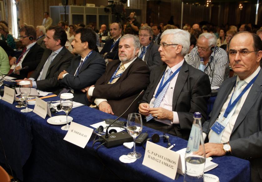 Joseph Daul MEP (France), Chairman of the EPP Group in the European Parliament (3rd from left), (r-l) Dimitris Sioufas, Speaker of the Greek Parliament, Ioannis Varvitsiotis MEP, outgoing Head of the Greek Delegation of the EPP Group, Kostas Karamanlis, Prime Minister of Greece, Martin Kamp, Secretary-General of the EPP Group, and John Biesmans, Deputy Secretary-General of the EPP Group