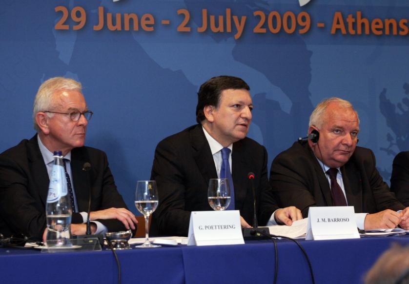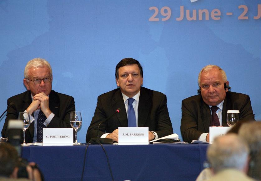 r-l: Joseph Daul MEP (France), Chairman of the EPP Group in the European Parliament, José Manuel Durão Barroso, President of the European Commission, and Hans-Gert Poettering MEP (EPP Group, Germany), President of the European Parliament