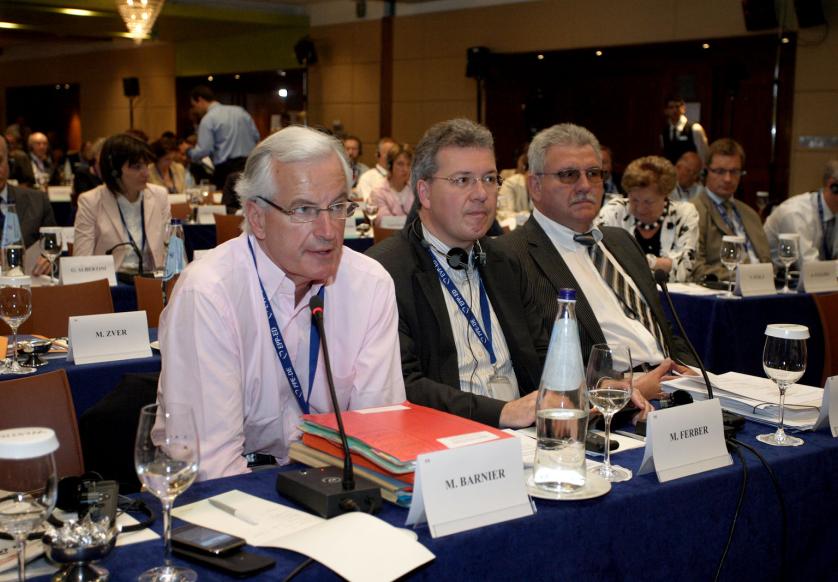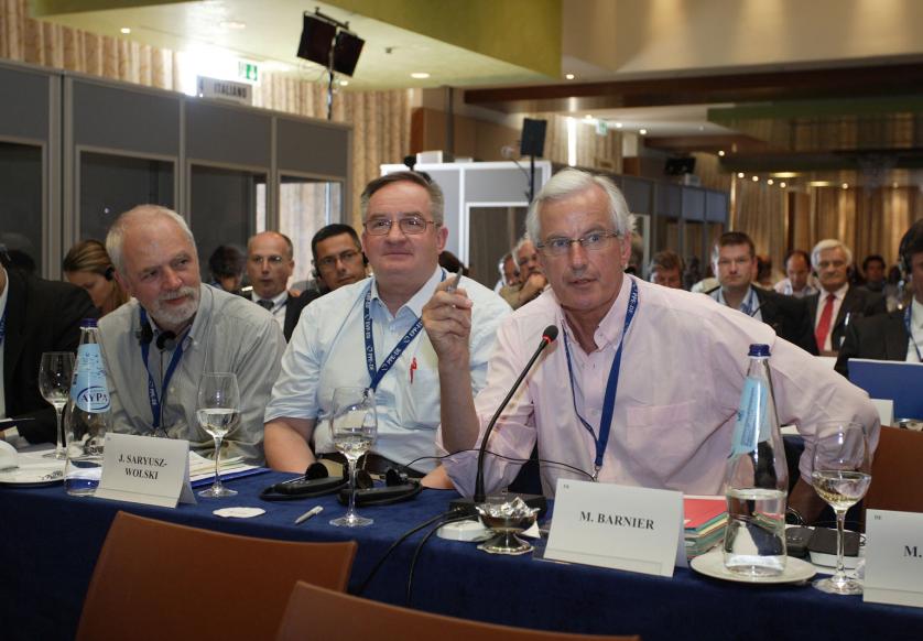 r-l: Michel Barnier MEP (EPP Group, France), a newly-elected Member of the European Parliament, Jacek Saryusz-Wolski MEP (EPP Group, Poland), Chairman of the Foreign Affairs Committee of the European Parliament, and Jan Olbrycht MEP (EPP Group, Poland), Vice-Chairman of the Committee on Regional Development of the European Parliament