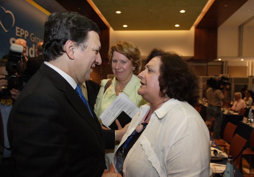 Marietta Giannakou MEP, Head of the Greek Delegation of the EPP Group in the European Parliament (on the right), talking to José Manuel Durão Barroso, President of the European Commission, with Corien Wortmann-Kool MEP (Netherlands), Vice-Chairwoman of the EPP Group and Vice-Chairwoman of the European People's Party (in the background)