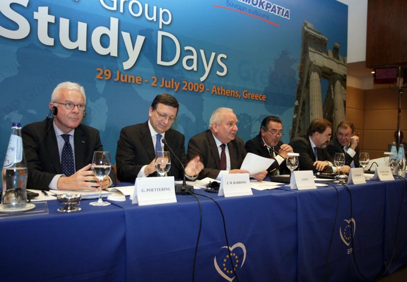 Joseph Daul MEP (France), Chairman of the EPP Group in the European Parliament (3rd from left), (l-r) Hans-Gert Poettering MEP (EPP Group, Germany), President of the European Parliament, José Manuel Durão Barroso, President of the European Commission, João de Deus Pinheiro MEP (Portugal), outgoing Vice-Chairman of the EPP Group, Martin Kamp, Secretary-General of the EPP Group, and John Biesmans, Deputy Secretary-General of the EPP Group
