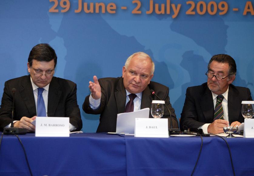 Joseph Daul MEP (France), Chairman of the EPP Group in the European Parliament (in the middle), José Manuel Durão Barroso, President of the European Commission (on the left), and João de Deus Pinheiro MEP (Portugal), outgoing Vice-Chairman of the EPP Group