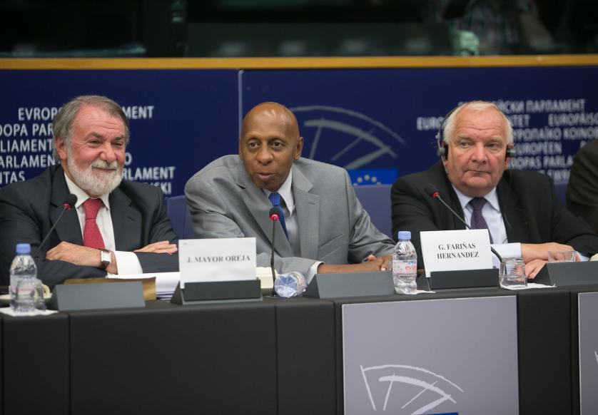 EPP Group Meeting with Guillermo Fariñas r-l: Joseph Daul MEP (France), Chairman of the EPP Group in the European Parliament, Guillermo Fariñas, a Cuban independent journalist and political dissident who won the 2010 Sakharov Prize but was prevented by Cuban authorities to travel to the EP to collect it, until now, and Jaime Mayor Oreja MEP (Spain), Vice-Chairman of the EPP Group