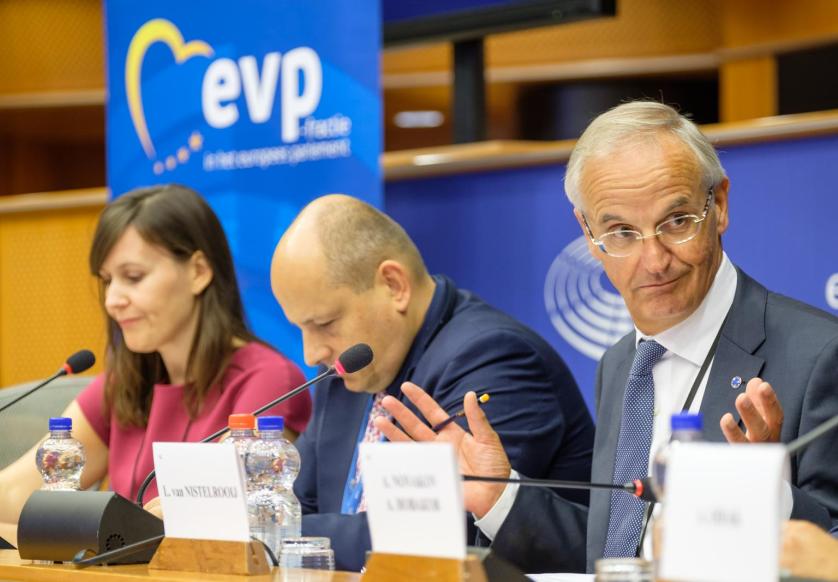 r-l: Lambert van Nistelrooij MEP (The Netherlands), EPP Group Spokesman in the Regional Development Committee of the European Parliament, Mikołaj Dowgielewicz, European Investment Bank Permanent Representative to the EU, and Lieke van Alphen Buscardini, Senior Advisor, EU Public Affairs, Vanguard Initiative