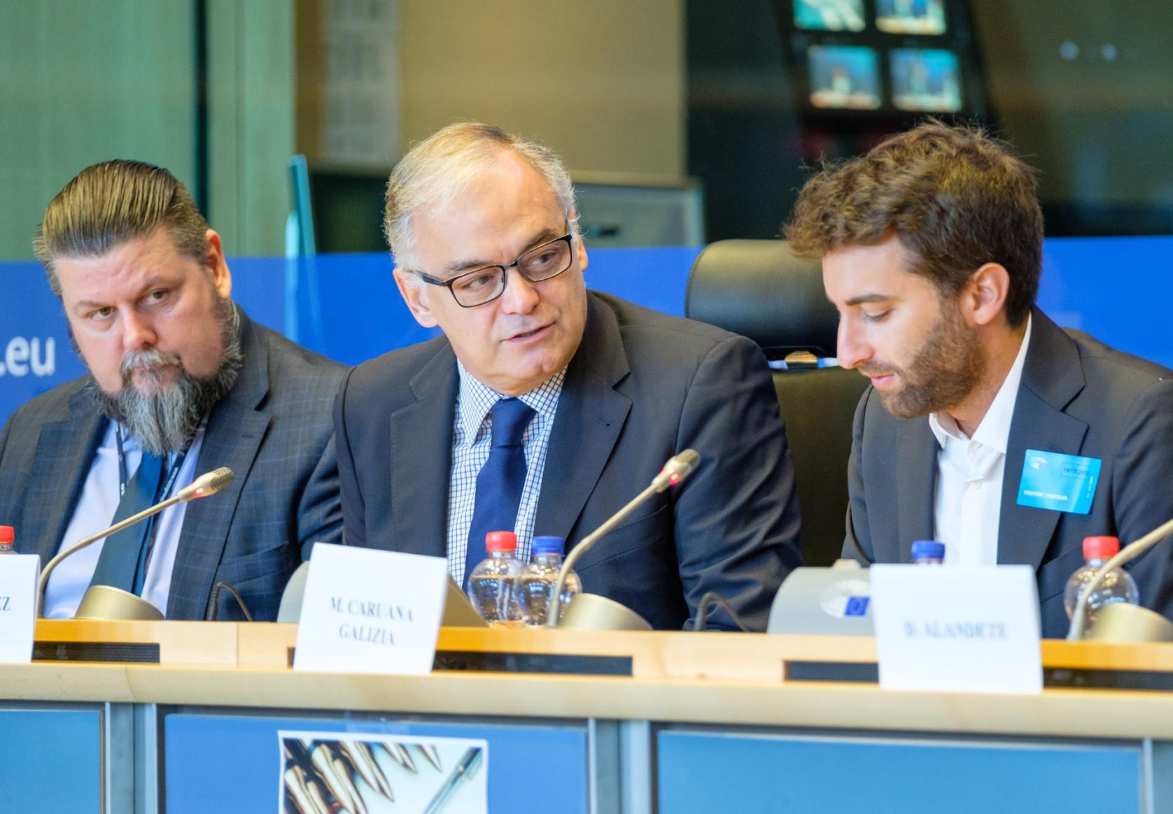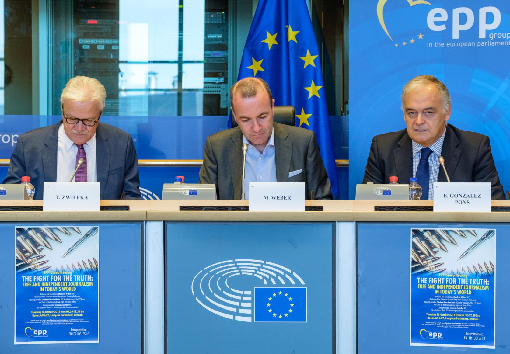 Esteban González Pons MEP (Spain), Vice-Chairman of the EPP Group in the European Parliament, Matthew Caruana Galizia, Pulitzer prize-winning journalist, and Marek Evison, EPP Group Secretariat